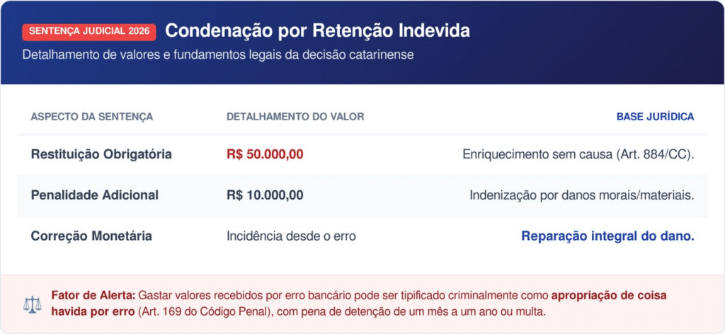 A prova determinante para a condenação foi uma ata notarial que demonstrou que o réu sabia do erro e agiu de forma deliberada para não devolver o capital. Além de ser obrigado a restituir os R$ 50 mil originais, o indivíduo foi condenado a pagar uma compensação adicional como punição pela conduta abusiva.