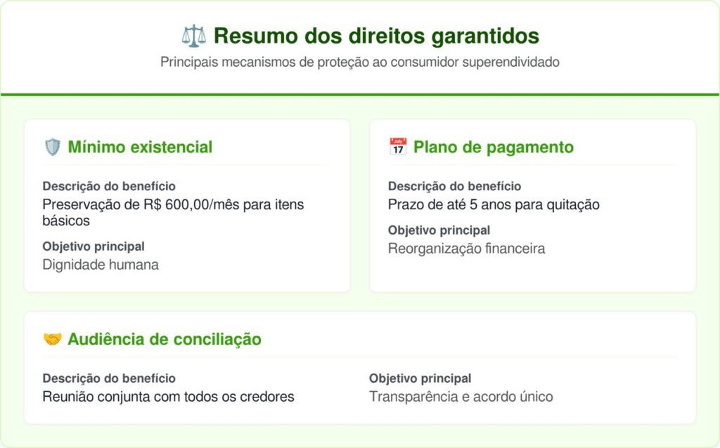 Vale ressaltar que a lei não extingue a dívida, mas reorganiza a forma como ela será paga. O objetivo é evitar que o superendividamento se torne um ciclo sem fim, permitindo que o devedor recupere seu poder de compra e seja excluído dos cadastros de inadimplentes de forma sustentável e justa.