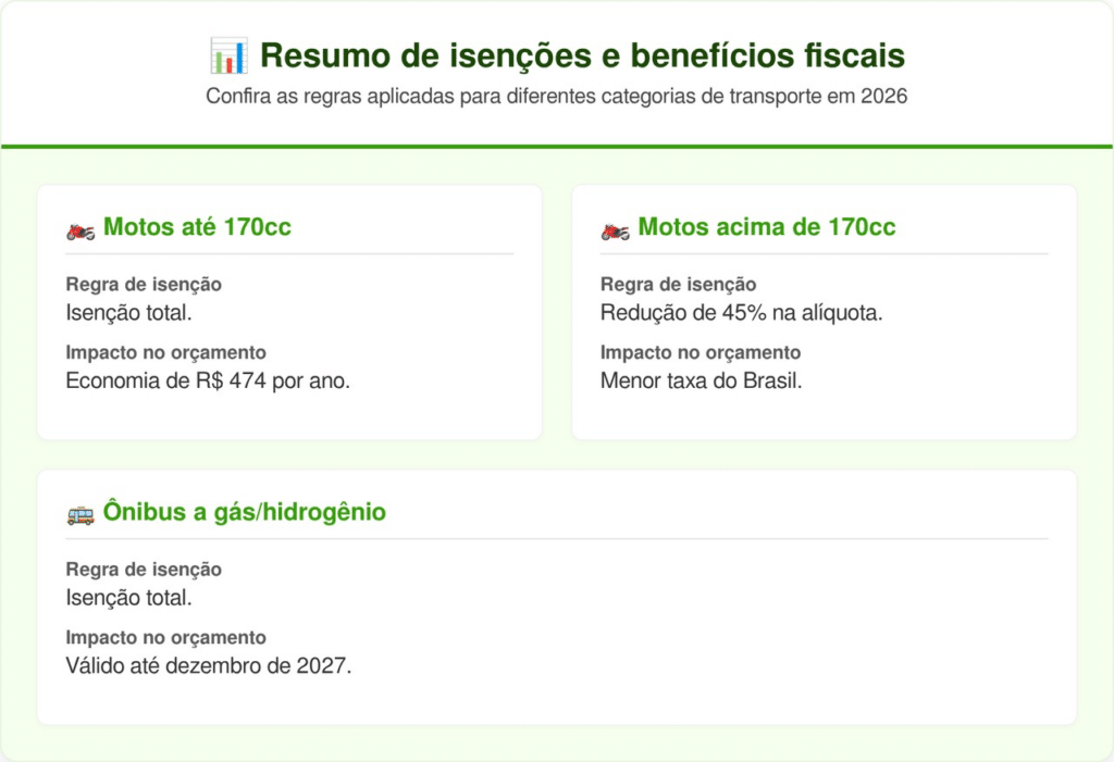 Sim, com as atualizações legislativas de setembro de 2025, o estado reduziu drasticamente os impostos para o restante da frota. Mesmo quem possui veículos acima de 170cc foi contemplado com cortes significativos na alíquota, tornando o custo de posse de veículos um dos mais baixos do Brasil.