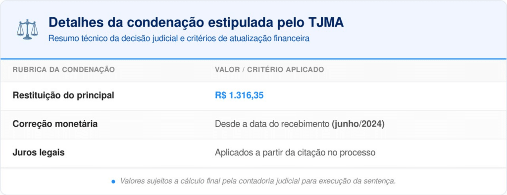 A juíza Maria José França Ribeiro aplicou os artigos 876 e 884 do Código Civil para fundamentar a sentença. Como o réu não apresentou defesa, a Justiça aplicou a revelia, considerando verdadeiros os fatos narrados. Confira os detalhes da condenação estipulada pelo TJMA: