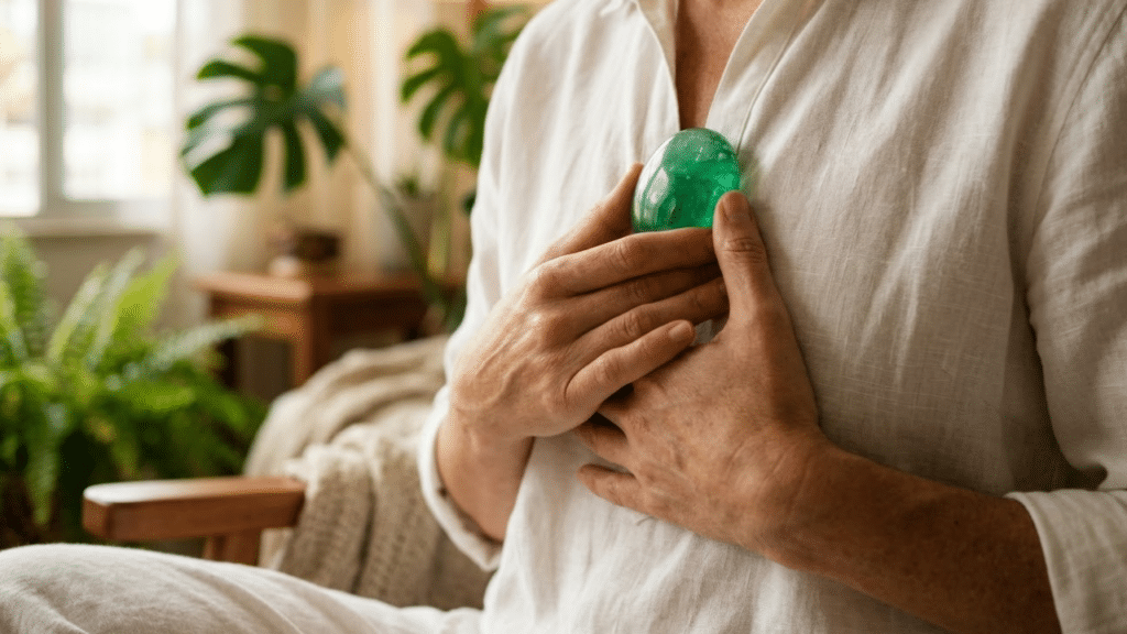Uso de cristal verde para equilíbrio do coração e cura espiritua