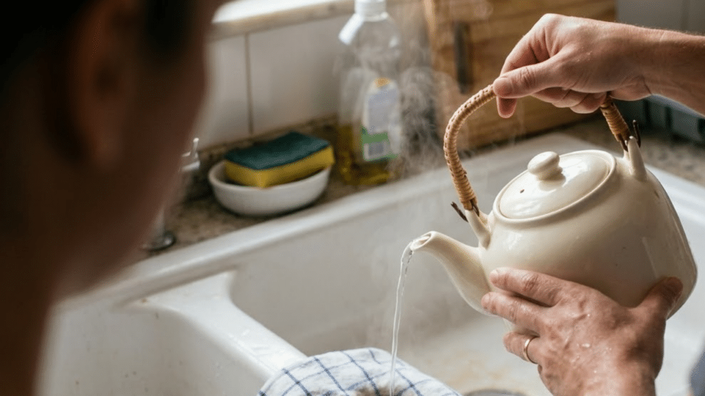 Aguarde entre 15 e 30 minutos antes de despejar a água quente, que deve ser jogada de forma lenta e constante. Para entender mais sobre as propriedades dessas substâncias, você pode consultar o artigo sobre reações químicas.