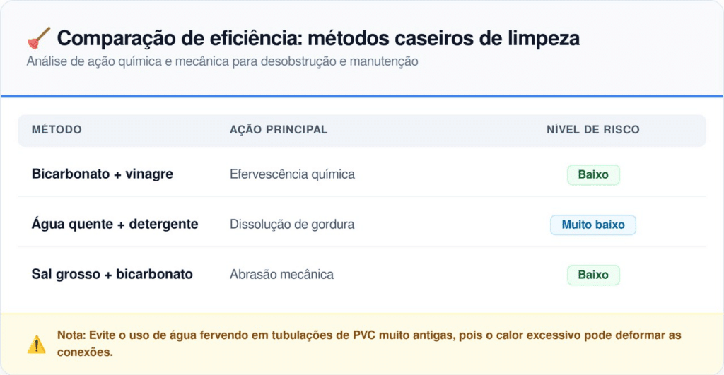 A reação efervescente gerada pela união desses dois componentes ajuda a desprender as placas de gordura das paredes internas dos canos. Essa alternativa é muito procurada em 2026 por ser ecológica e não danificar as juntas de vedação como os ácidos industriais.