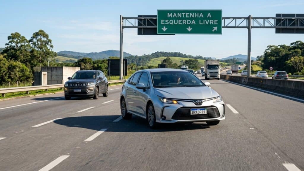 Muitos condutores acreditam que, ao trafegar no limite máximo de velocidade da via, possuem o direito de permanecer na faixa da esquerda. No entanto, o Código de Trânsito Brasileiro (CTB) reforça que essa conduta é passível de autuação, priorizando a fluidez e a segurança coletiva acima da velocidade individual.