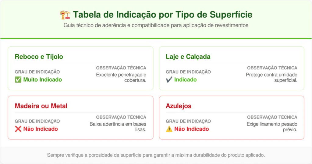 A eficácia dessa tinta caseira está diretamente ligada à porosidade do suporte, pois ela necessita de ancoragem mecânica para se fixar. Em rebocos novos, tijolos aparentes e lajes de concreto, o resultado costuma ser surpreendente, criando uma camada firme e resistente ao toque logo após a cura total.