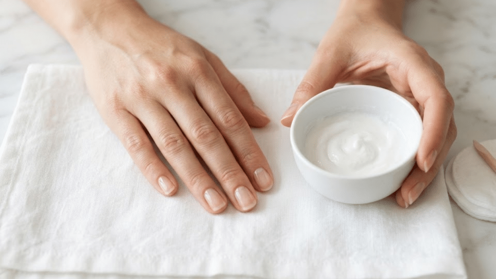 - Secar com toalha macia, sem esfregar com força, e finalizar com creme ou óleo específico para mãos e cutículas.
