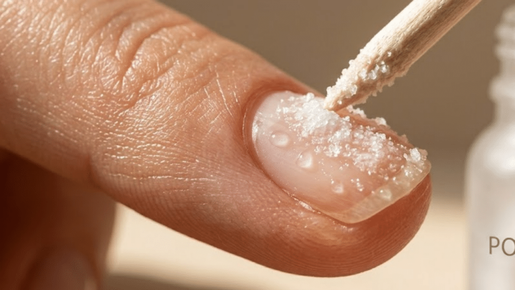 Em unhas naturalmente finas, que descamam ou quebram com facilidade, qualquer esfoliação exige prudência. O bicarbonato de sódio nas unhas, quando usado com muita frequência, pode contribuir para desgaste da superfície, sensação de fragilidade e maior porosidade da lâmina.