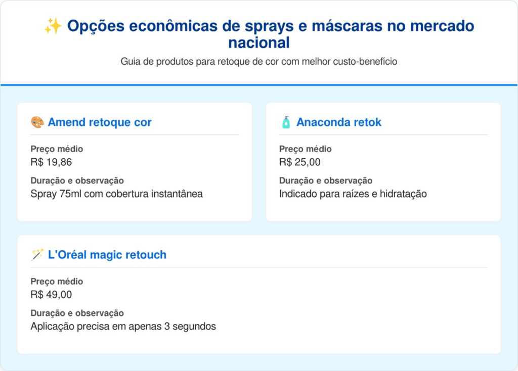 Em março de 2026, o mercado brasileiro oferece diversas opções acessíveis em farmácias, com valores entre R$ 20,00 e R$ 50,00. Esses produtos são ideais para cobrir a raiz aparente ou mechas localizadas, custando uma fração do valor de uma coloração profissional permanente.