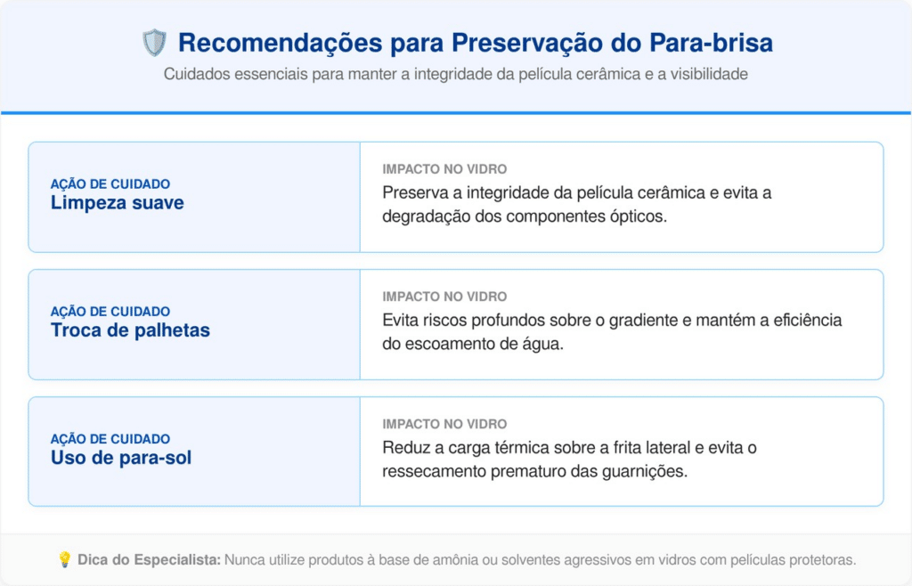 A resistência física do para-brisa é testada diariamente por vibrações e pressões de vento que exigem uma base de fixação estável. Estudos sobre radiação ultravioleta mostram que a exposição solar intensa acelera a degradação de materiais sintéticos quando não há proteção física adequada, como a faixa cerâmica no vidro.