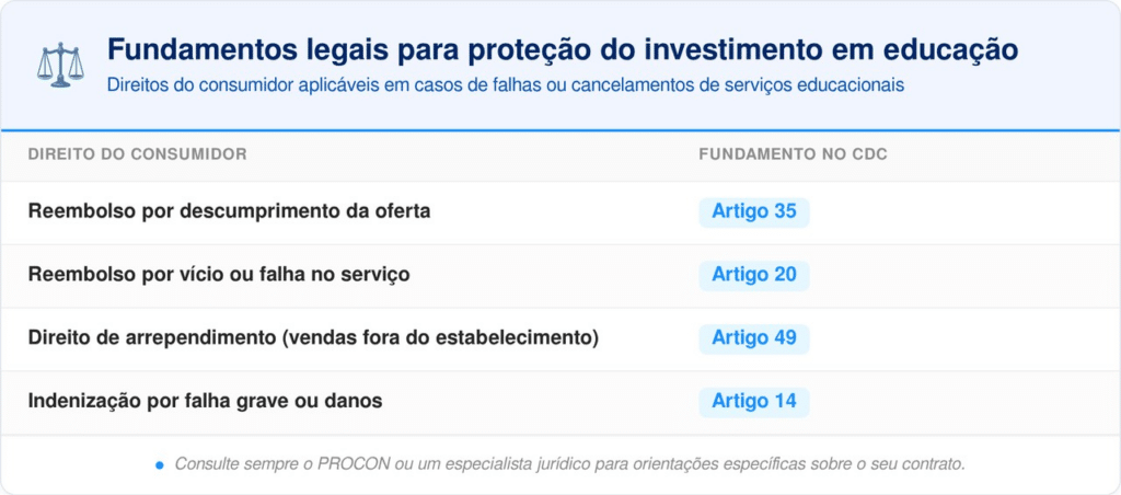 O Código de Defesa do Consumidor (CDC) garante que o aluno não seja lesado por publicidade enganosa. No Brasil, prometer um serviço e não entregá-lo conforme o anúncio caracteriza descumprimento de oferta, permitindo o cancelamento imediato sem ônus ao consumidor.