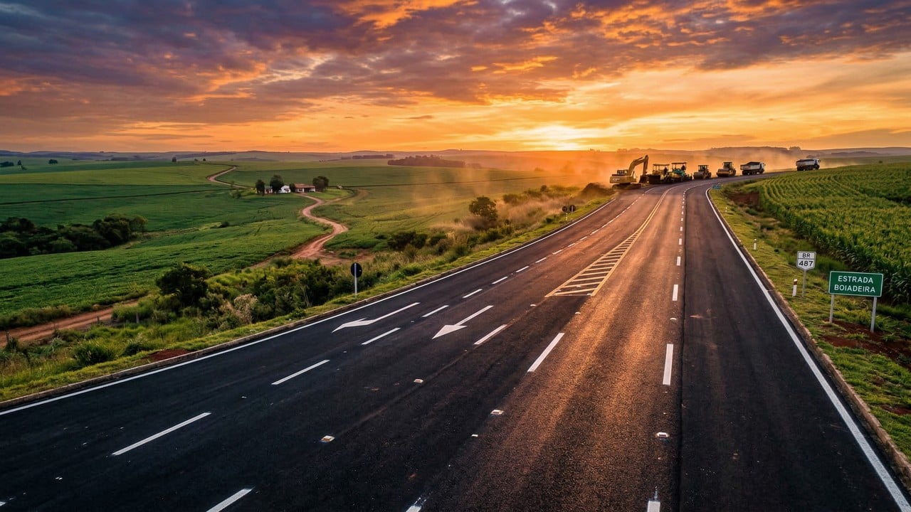 A Estrada Boiadeira (BR-487/PR) tem papel histórico ligado ao transporte de gado entre Mato Grosso do Sul e Paraná e hoje integra um corredor logístico essencial ao agronegócio. No Lote 2A, o DNIT prevê a pavimentação de 37,4 quilômetros entre Serra dos Dourados, em Umuarama, e Cruzeiro do Oeste, com terraplenagem, base, sub-base, drenagem e sinalização.