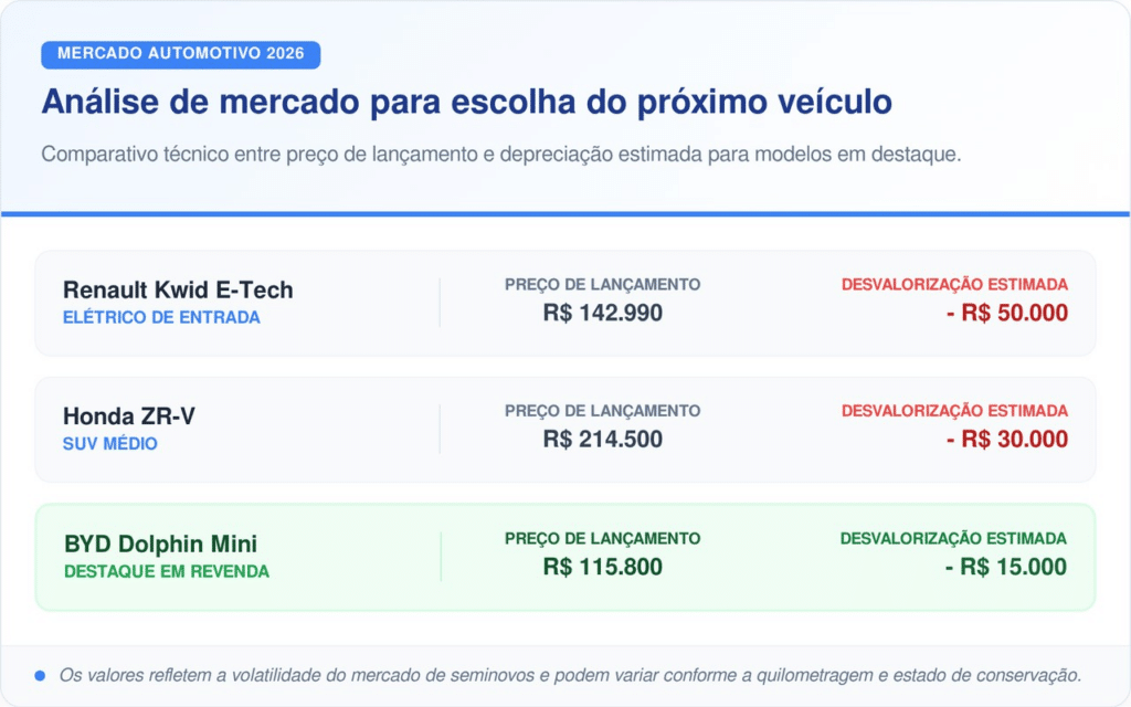 A desvalorização estimada reflete a rejeição por conjuntos mecânicos defasados ou reposicionamentos de tabela. Para visualizar como esses números se comportam segundo dados da Tabela FIPE, analise o comparativo de perdas financeiras abaixo: