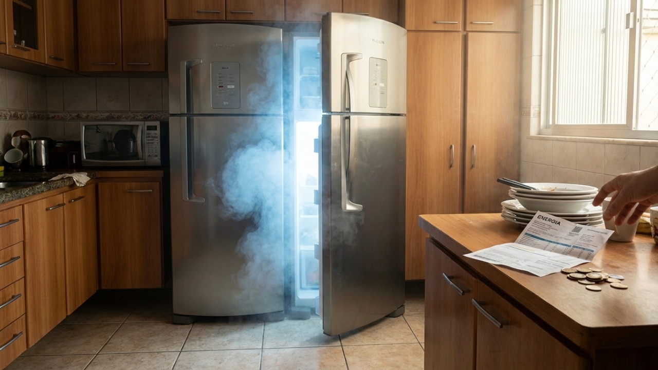 O costume de deixar geladeira aberta por muito tempo força o compressor a trabalhar em dobro para recuperar a temperatura interna. Essa prática eleva o consumo de energia drasticamente, impactando o orçamento familiar ao final de cada mês em regiões quentes.