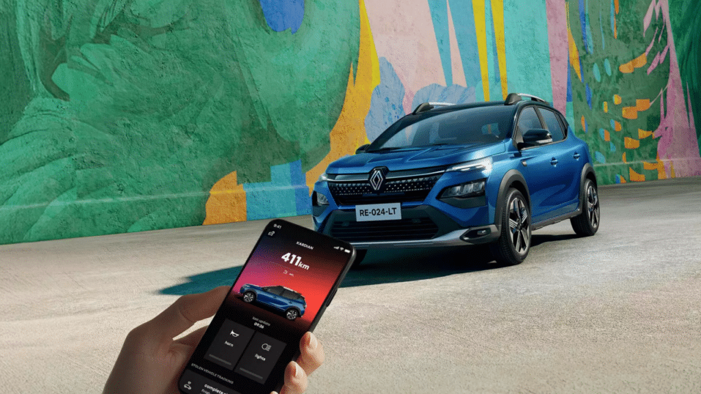 Verificando a autonomia do via smartphone Renault Kardian – Créditos: Divulgação/Renault