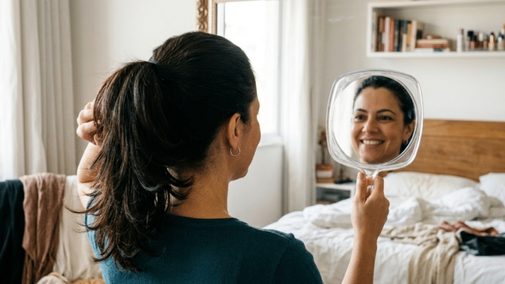 - Mudar a risca: alternar o lado da repartição evita que o cabelo fique “viciado” e chapado.