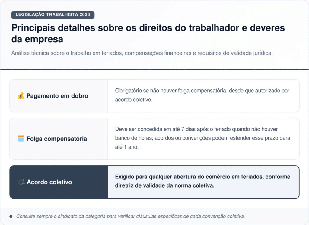Trabalho em feriado vai mudar em 2026 e comércio terá que pagar em dobro ou dar folga rápida