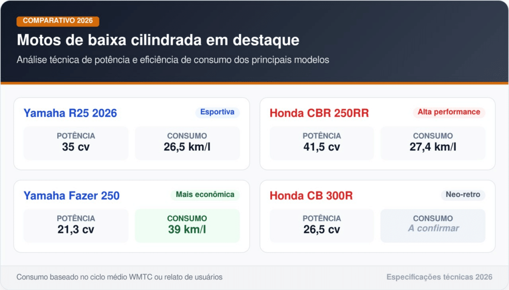 Confira os dados das principais motos de baixa cilindrada em destaque: