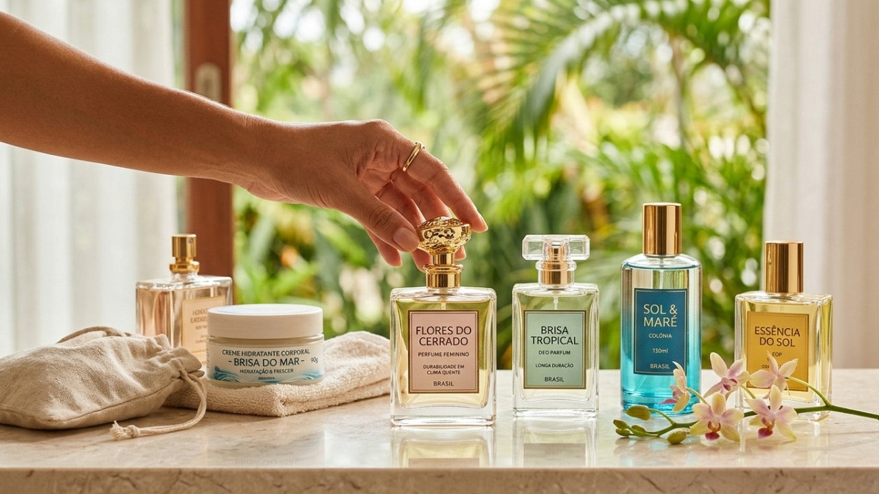O mercado nacional oferece fragrâncias reconhecidas pela boa fixação em dias quentes, unindo concentração adequada, construção olfativa inteligente e bom custo-benefício. Perfumes como Lily Lumière e Floratta Rose Sucrée se destacam pela projeção equilibrada, sem pesar no calor típico do país.