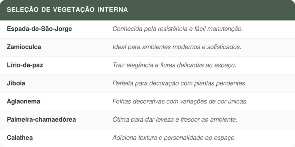 Transforme seu refúgio com plantas que prosperam na sombra, unindo o frescor do paisagismo indoor à praticidade de um décor que exige baixa manutenção e entrega máximo bem-estar.