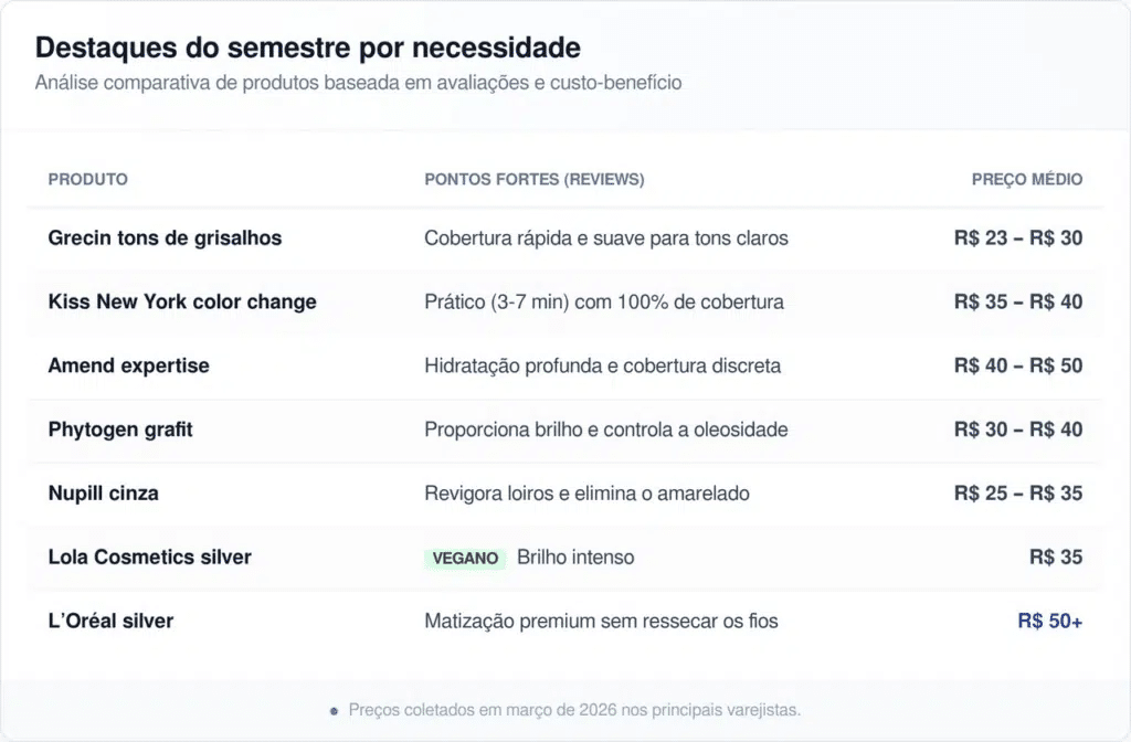 Para quem busca aliar eficiência e preço baixo, o mercado atual oferece opções que vão desde o cinza clássico até o castanho profundo. As notas de usuários, com média de 4,5 estrelas, destacam a durabilidade e a capacidade de hidratação dessas fórmulas.