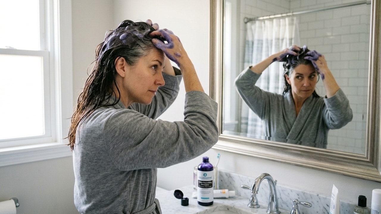 Para fios 100% brancos que buscam um visual “platinado”, os shampoos violetas são imbatíveis. Se o seu cabelo é escuro e os primeiros fios brancos estão incomodando, as versões tonalizantes com pigmentos castanhos funcionam melhor, agindo de forma discreta para quem tem até 40% de grisalhos.