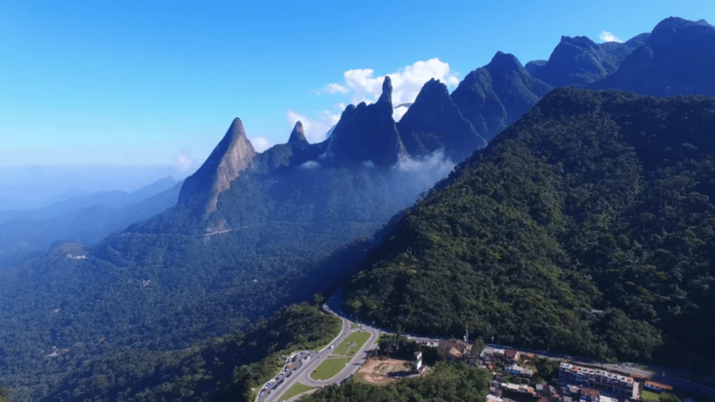 Em 1912, cinco moradores subiram o Dedo de Deus com cordas de sisal e bambus, fundando o esporte no Brasil. Mais de cem anos depois, Teresópolis guarda o pico que estampa a bandeira fluminense e a maior rede de trilhas do país.