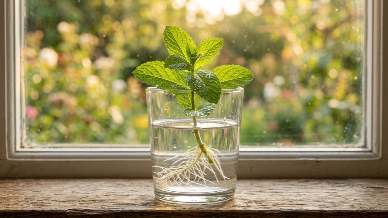 A hortelã é uma planta resistente e com boa capacidade de adaptação, o que facilita o cultivo em água. Como as raízes se desenvolvem rapidamente a partir de um caule saudável, o copo d’água funciona como um ambiente simples para iniciar o crescimento sem a necessidade de substrato.