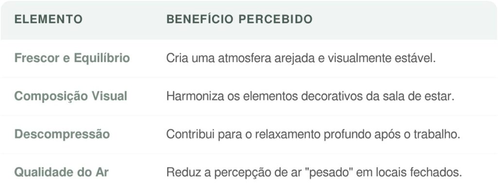 Como exige poucos cuidados, ela se adapta perfeitamente ao estilo de vida urbano, trazendo a natureza para dentro de casa sem demandar muito tempo. Além de sua versatilidade visual, ela promove o bem-estar ao suavizar o estresse diário e reforçar a sensação de conforto e equilíbrio no ambiente doméstico.