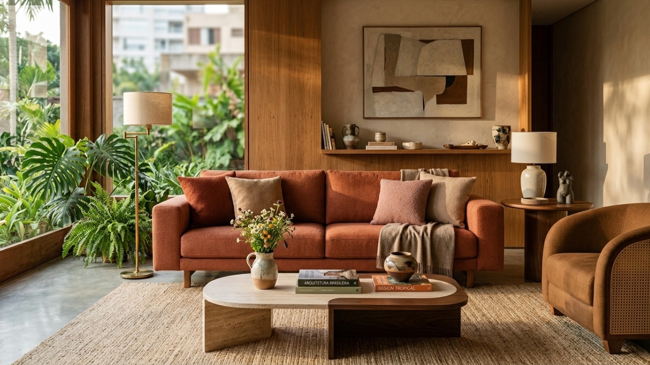 Como os tons terrosos dominam as salas modernas?