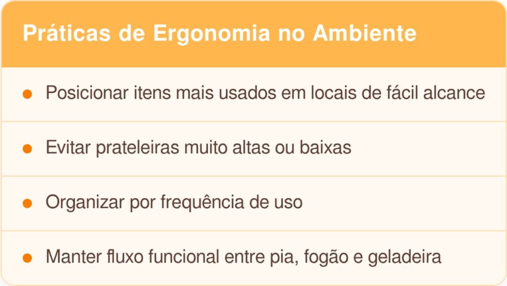 A ergonomia na cozinha é essencial para garantir conforto e eficiência nas atividades diárias. No design de interiores, ela considera a altura dos móveis, a disposição dos utensílios e a facilidade de acesso.