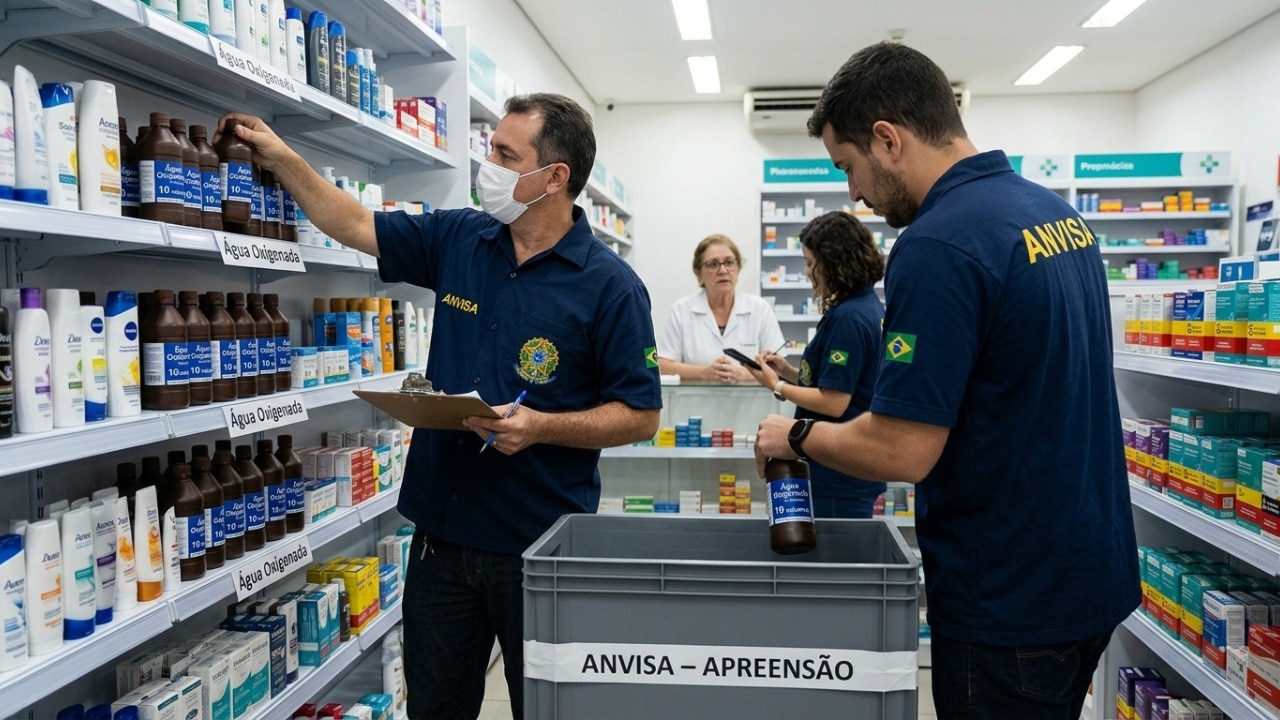 A Anvisa determinou o recolhimento imediato de lotes de água oxigenada e a proibição de um cosmético labial que circulava sem autorização legal. As medidas visam combater a rotulagem irregular que atribui propriedades terapêuticas a produtos que não foram registrados para essa finalidade.