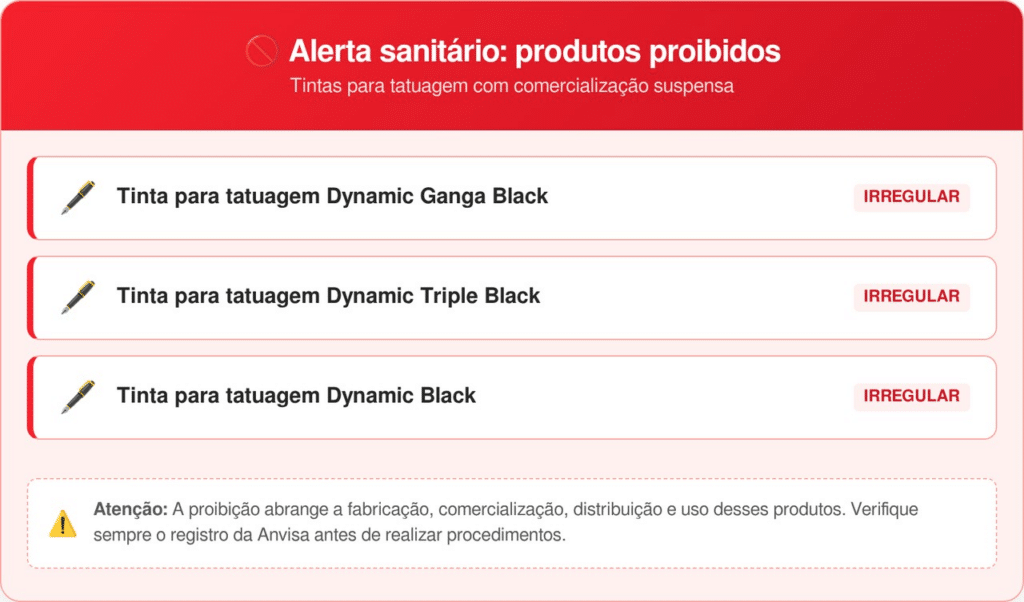 Os tatuadores que possuem esses produtos precisam interromper o uso imediatamente. A orientação oficial determina que os materiais sejam separados e descartados conforme as normas da vigilância sanitária local.