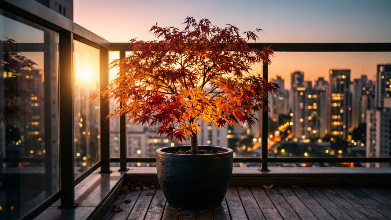 O Acer palmatum, popularmente chamado de bordo-japonês, é uma das espécies ornamentais mais adequadas para varandas pequenas. Ele é a árvore que muda de cor de forma dinâmica, transformando-se visivelmente a cada nova estação.
