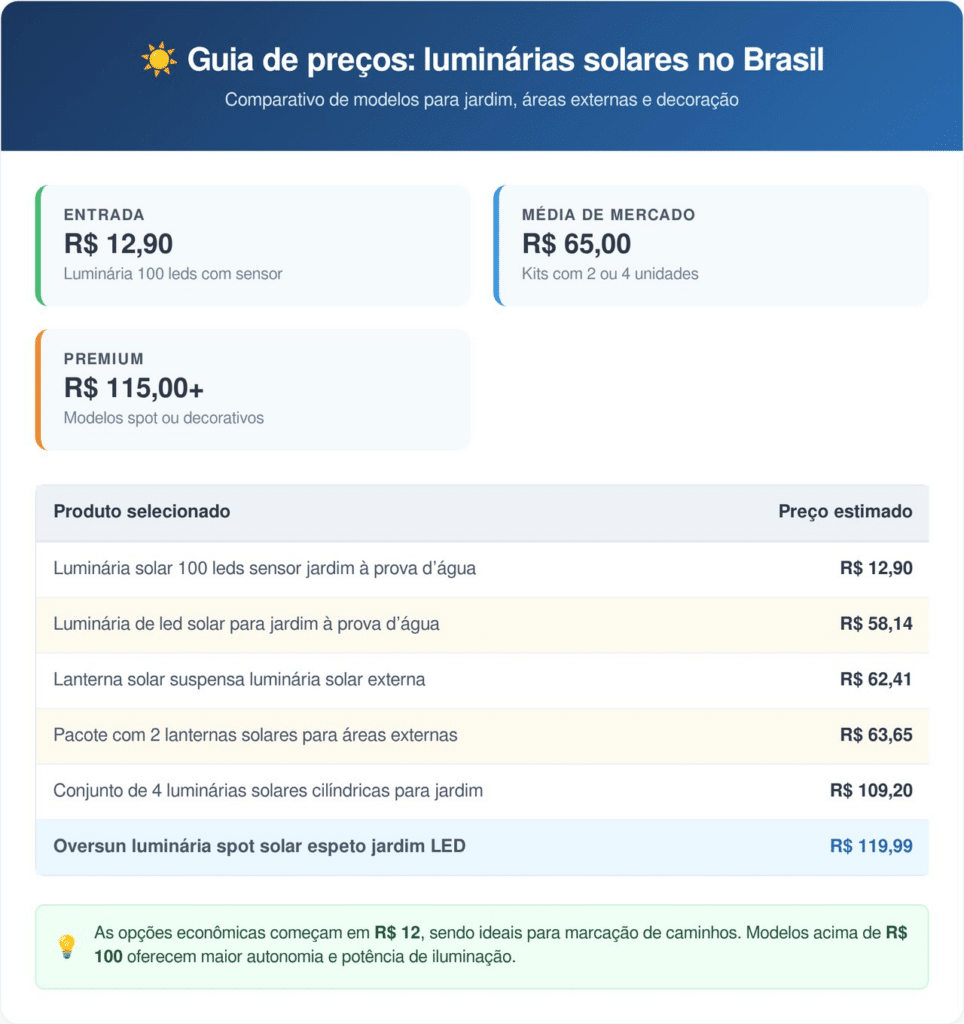 Quais lanternas solares posso usar no terraço ou jardim e quanto elas custam?