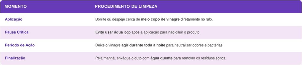 Aplicar vinagre no ralo à noite potencializa seus efeitos, já que o produto permanece agindo por mais tempo sem interferência do uso da pia.