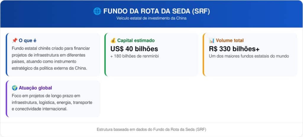O Fundo da Rota da Seda (SRF) é um veículo estatal chinês criado para financiar projetos de infraestrutura em diferentes países. Ele funciona como uma ferramenta estratégica da política externa da China. Veja os impactos desse investimento: