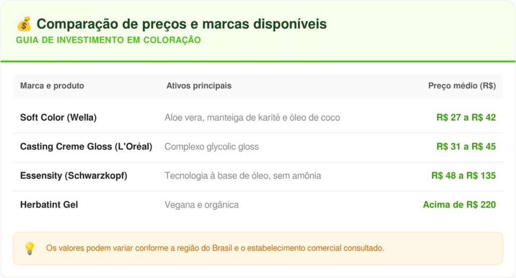O mercado atual oferece uma vasta gama de produtos que atendem desde quem busca economia até quem prefere tecnologias orgânicas de maior desempenho. Os valores variam conforme os ativos de tratamento inclusos na fórmula do kit de coloração escolhido.