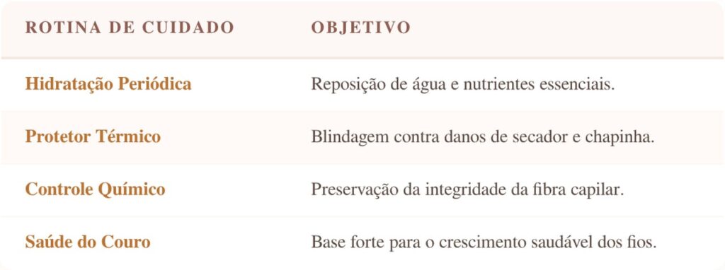 Além do tipo de cabelo, os hábitos diários têm grande impacto na saúde dos fios. O uso frequente de secador, chapinha e químicas como coloração e alisamento pode acelerar o desgaste das pontas.