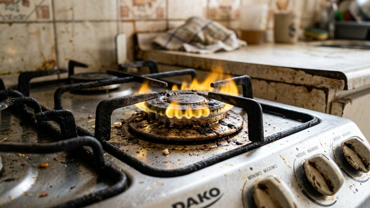 O fogão com chama fraca geralmente apresenta obstrução parcial nas saídas de gás. Isso acontece devido ao acúmulo de gordura, poeira e resíduos de alimentos que se queimam com o uso diário, afetando a combustão correta. Quando a passagem de ar e gás é comprometida, a chama perde potência e pode até apagar com facilidade, tornando a limpeza da boca do fogão uma etapa essencial da manutenção caseira.