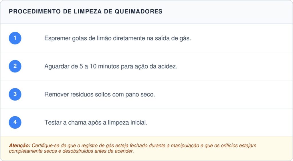 O limão possui alta acidez natural, o que ajuda a quebrar moléculas de gordura carbonizada que se acumulam nas saídas do fogão. Esse processo facilita a limpeza inicial e melhora a passagem do gás, sendo uma alternativa prática dentro dos truques de cozinha.