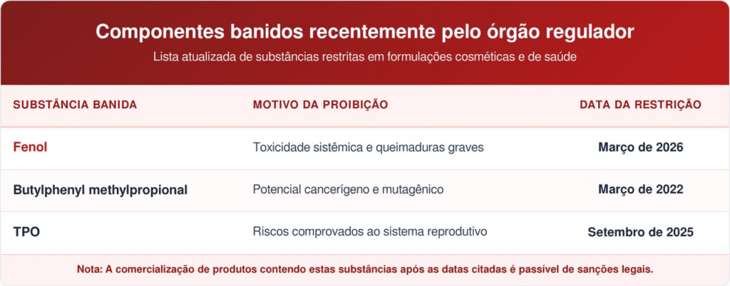 Veja a tabela com componentes banidos recentemente pelo órgão regulador: