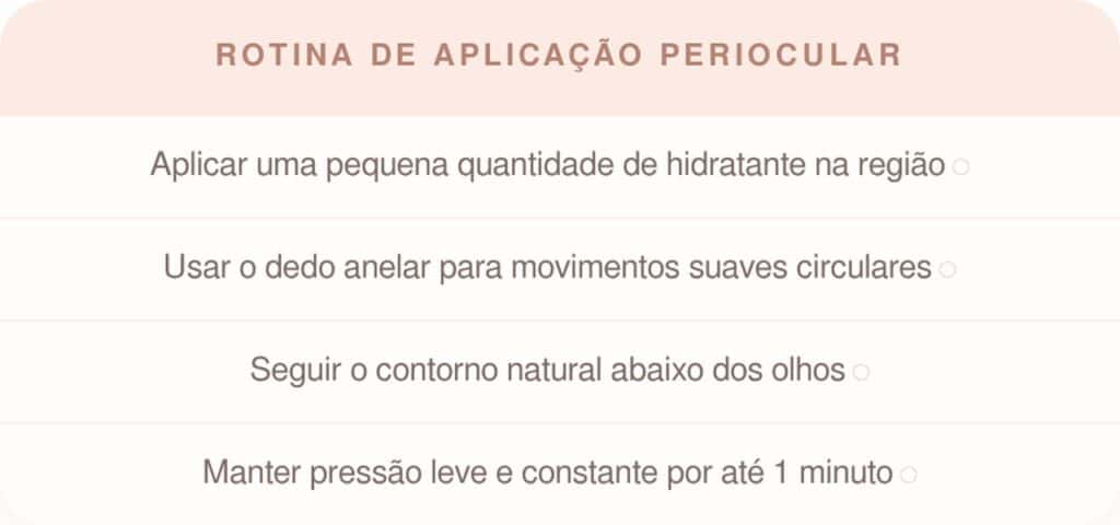 Abaixo, detalhamos a Rotina de Aplicação Periocular ideal para integrar ao seu ritual de autocuidado diário:
