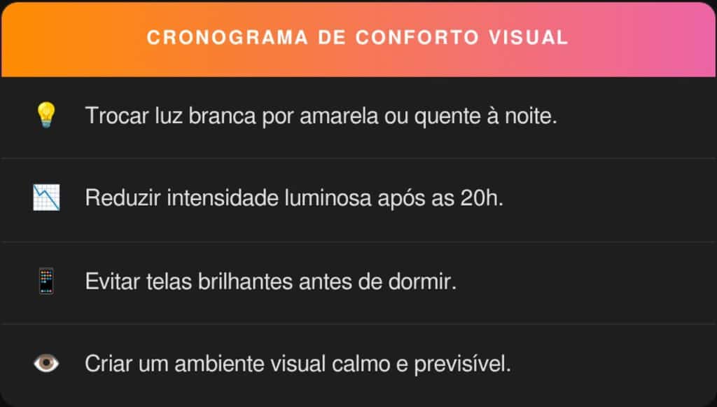 Confira este Cronograma de Conforto Visual para transformar suas noites: