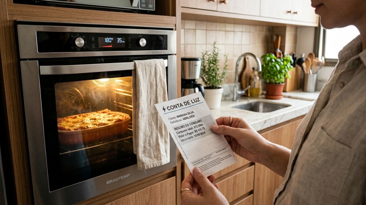 Isso não significa que o forno sozinho vai dobrar a conta de luz em qualquer casa. O impacto depende da frequência de uso, da temperatura escolhida, do tempo de preparo e do hábito de abrir a porta várias vezes durante o cozimento.
