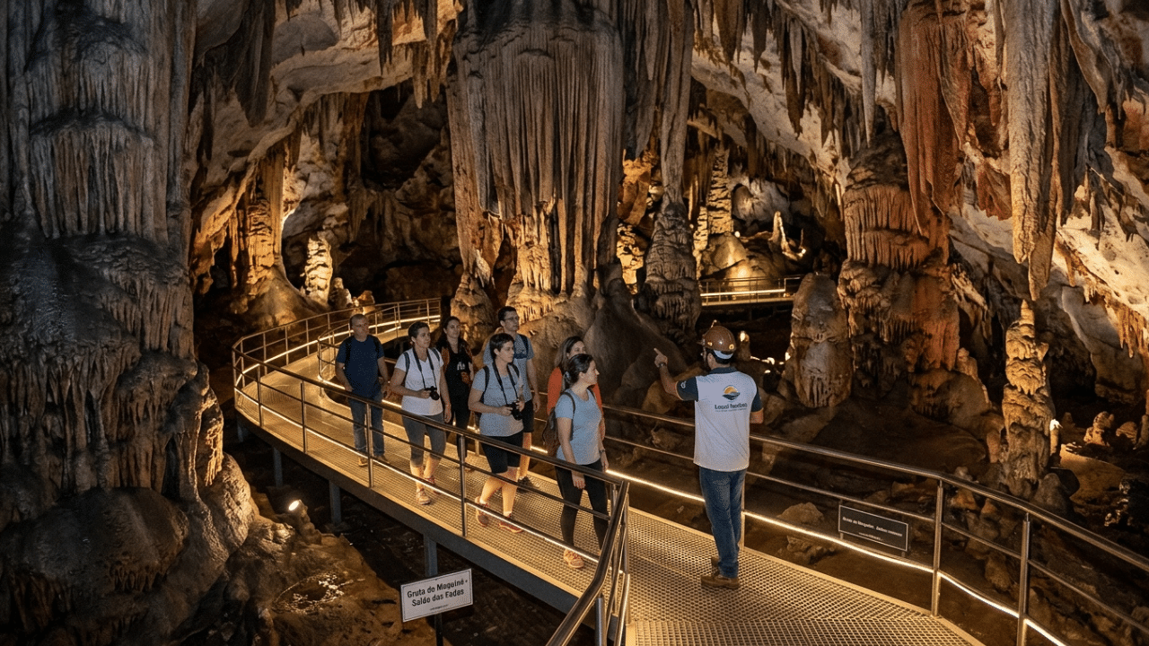 Ao atravessar cerca de 650 metros de galerias subterrâneas, quem visita a Gruta do Maquiné percorre um cenário moldado pela água ao longo de aproximadamente 600 milhões de anos. Localizada em Cordisburgo, no interior de Minas Gerais, a caverna divide protagonismo com a cidade natal de Guimarães Rosa, unindo natureza e história em um mesmo destino.