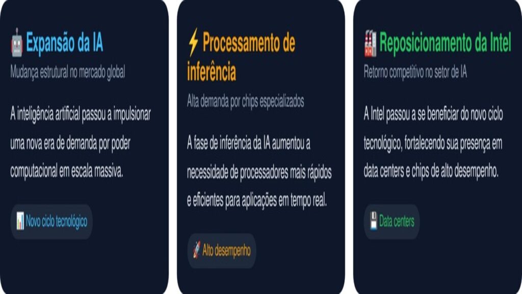 A expansão da inteligência artificial (IA) foi decisiva para a mudança de postura da empresa. A demanda por processamento, especialmente na fase de inferência, aumentou a necessidade de chips de alto desempenho.