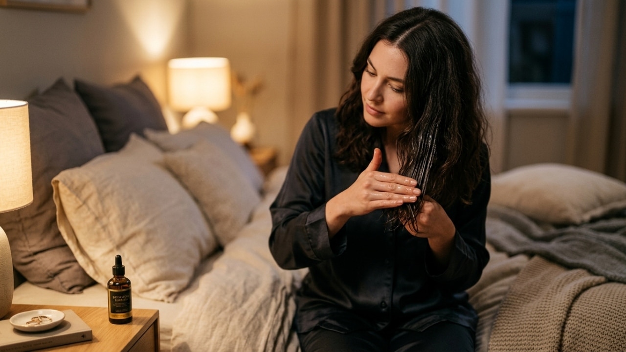 Passar óleo de argan nos fios antes de dormir transforma o cabelo durante a noite. Você acorda com menos frizz, mais brilho e sem precisar de secador, em apenas 3 minutos de cuidado.