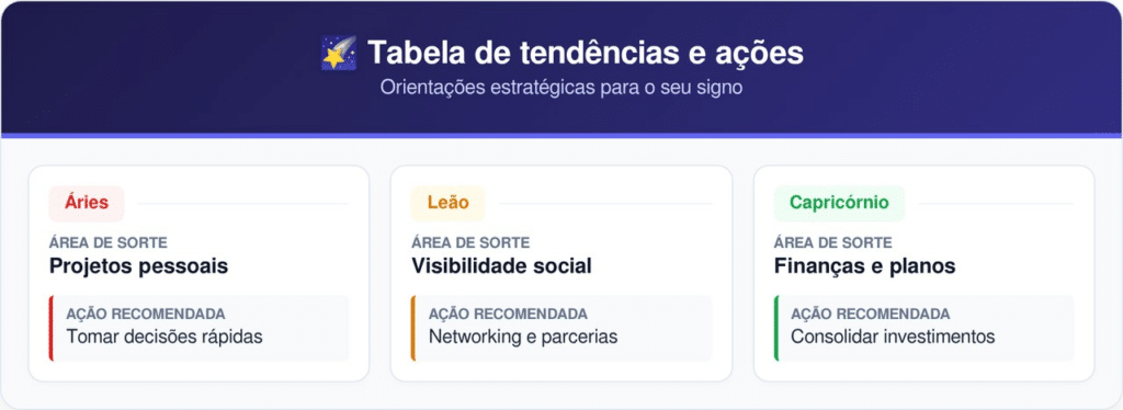 Para os signos de fogo, o segredo é a ação. Áries deve aproveitar o impulso para finalizar pendências, enquanto Leão deve focar em parcerias estratégicas. Segundo especialistas em astrologia comportamental, o reconhecimento virá para quem não tiver medo de ocupar espaços de liderança.