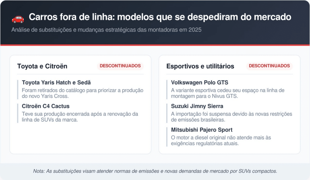 Abaixo, listamos alguns dos principais veículos que encerraram sua produção ou importação recentemente: