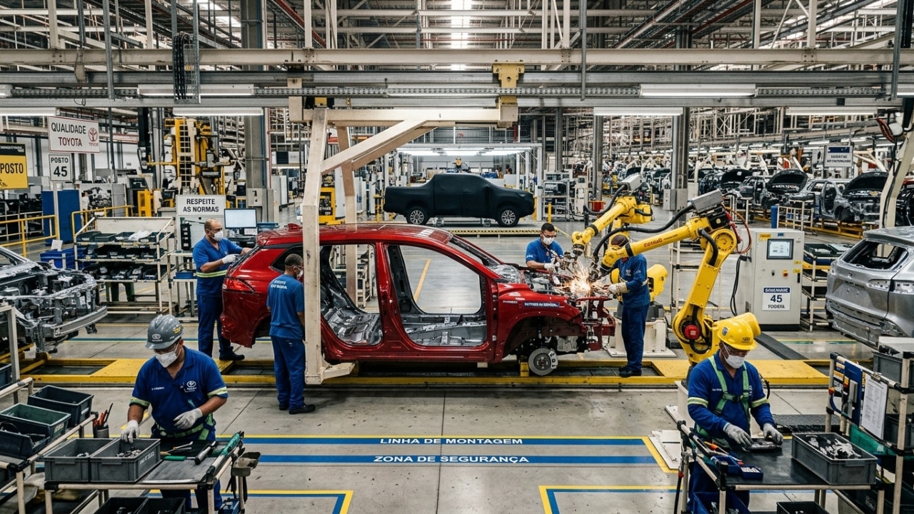 A Toyota prepara uma revolução em sua linha de montagem brasileira com um investimento histórico de R$ 11,5 bilhões. O plano foca na produção de uma picape inédita e na transferência total do sedã Corolla para Sorocaba.